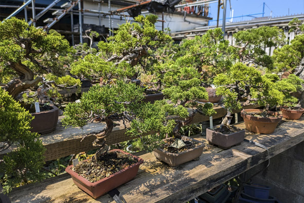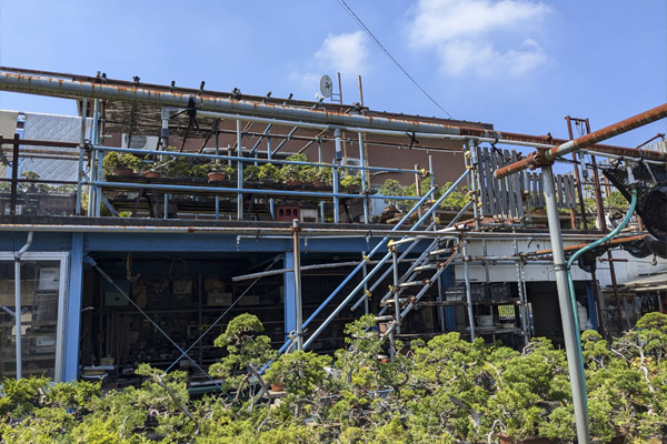 Con la intención de disfrutar despacio, viajamos por carreteras secundarias siempre que nos es posible, así encontramos pequeños negocios que si no serían imposibles de localizar. En esta ocasión camino de la ciudad de Itoigawa y junto a la pequeña carretera que sube a la montaña, encontramos un pequeño vivero de bonsáis que ocupaba la parte delantera y terraza de una pequeña construcción de una zona industrial.