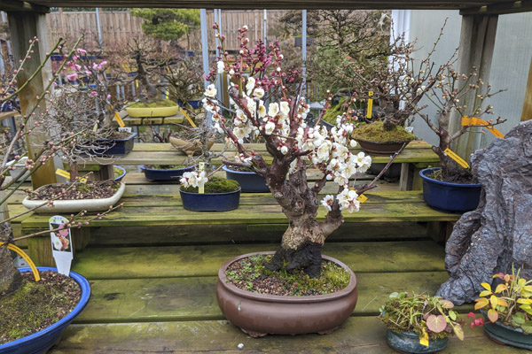 La nieve llegó y cambió el paisaje en Bonsai Colmenar, hasta este momento multicolor y muy variado: frutales en flor, arces empezando a brotar, arces para pinzar, pinos con grandes velas, hayas que empiezan a hinchar yemas, primeras flores de azaleas …. Cubrió de blanco las nuevas hojas y las flores, modificó siluetas, consiguiendo aunar las dos estaciones, primavera e invierno.
