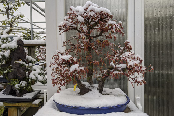El peligro puede estar en que la nieve pueda llegar a romper por su peso alguna de las ramas de los bonsais, pero para que esto ocurra la precipitación tiene que ser especialmente abundante.