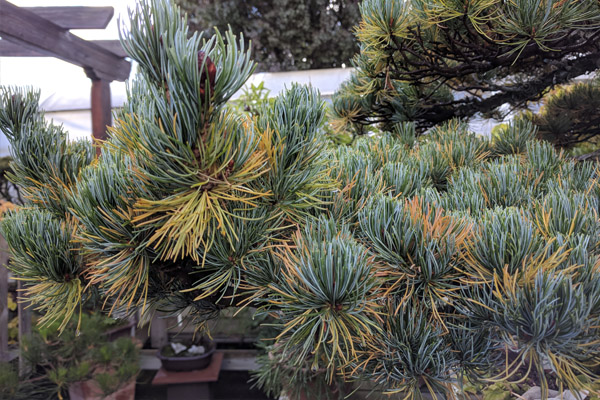 En otro orden y siempre y cuando las temperaturas sean las habituales de la zona, tenemos bonsáis completamente aclimatados, que por sus características y especie disfrutan del invierno sin ninguna protección, pinos, juníperos, arces, fresnos,… son un ejemplo de este segmento.
