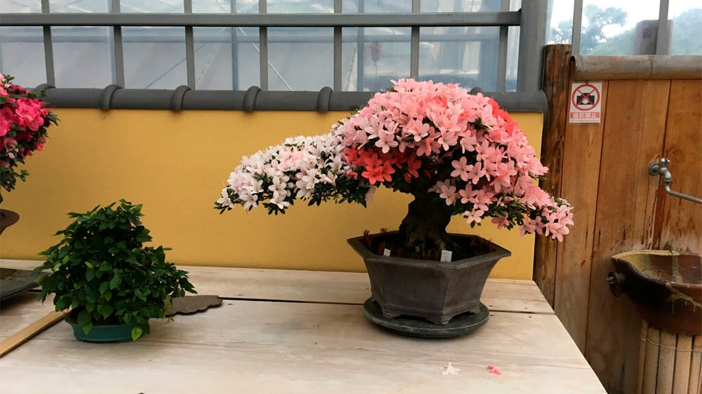 Según nos explica su producción más fuerte es la de Azaleas, y entendemos por sus comentarios que la especie que más le gusta, aunque no deja de trabajar cualquier planta que le parezca interesante y que se adapte a esta zona de Japón, Yasugi, ubicada al oeste de la isla de Honshu.