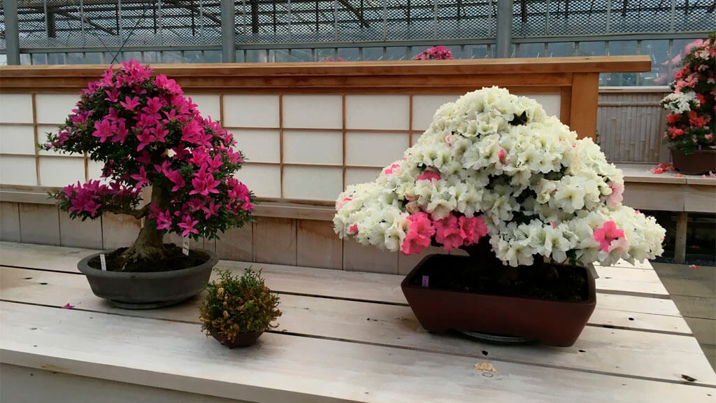 Igualmente nos sorprende la gran variedad de especies que encontramos, algo poco habitual en Japón. En este caso además de las ya mencionadas, Pinos, Juníperos, Azaleas y Prunus, vimos buenos ejemplares de Stewarthias, Chaenomeles, Glicineas, Arces, Lagestroemias, etc .