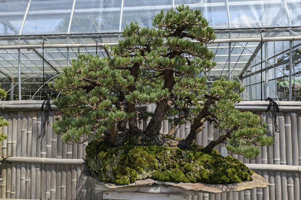 Aunque la variedad de especies no es muy extensa, la riqueza se ve en la diversidad de estilos. Pudiéndose apreciar una completa representación de los estilos clásicos del bonsái: composiciones de bosque (Yose-ue), ejemplares agarrados a roca (Ishizuke), balsas (Ikadabuki), tronco múltiple (Kabudachi), estilo inclinado (Shakan), vertical formal (Chokkan), y azotado por el viento (Fukinagashi).