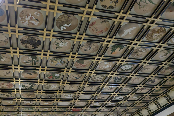 El salón Sanshokaku es el que más nos impresionó, su techo está decorado con 230 pinturas diferentes de animales y flores. En uno de los extremos de la sala se encuentra el tokonoma.