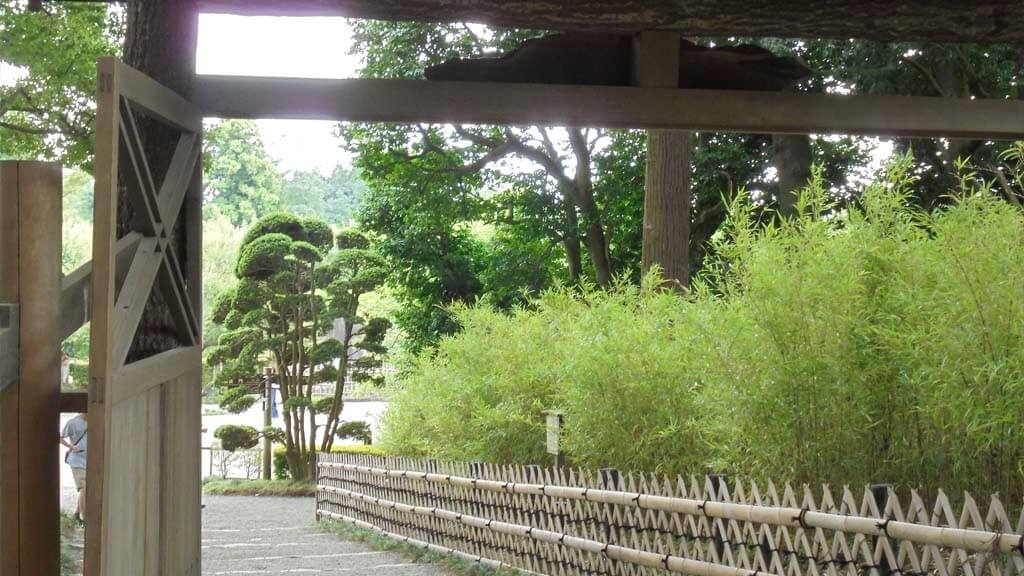 La entrada norte está cerrada por la Omotemon, puerta construida en madera de pino, llamada Kukomon, (cuya traducción es puerta negra, debido al color de su pintura). Esta zona del jardín se salvó de la destrucción de los bombardeos de Agosto de 1945, por lo que esta puerta es la original de 1841.