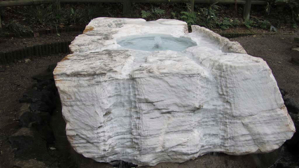 Entre los cedros encontramos una gran piedra blanca de la que emanan aguas termales.