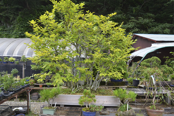 Sorprende la cantidad de variedades que cultiva, esto es poco habitual en Japón, Arces, Pinos, Pseudocidonias, Azaleas, Juníperos, Cotoneaster, Hayas, Tejos, Ciruelos, Manzanos… todos pulcramente colocados. Ninguna pieza era para la Kokufo, sin embargo trasmitía tanta paciencia, tantas horas de trabajo, tanta dedicación, que a la salida coincidimos en que era uno de los más entrañables jardines de bonsái que llevamos visitados.