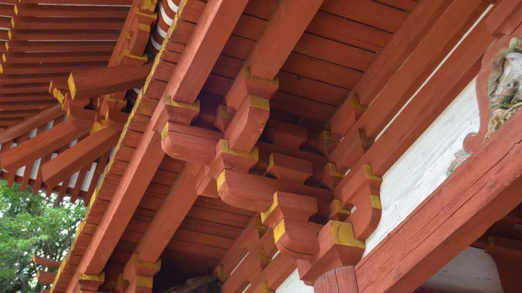 Esta construido con el estilo Nagare-Zukuri con edificios de madera decorados con pintura dentro de los gustos sintoístas.