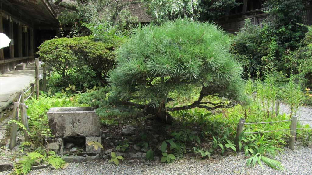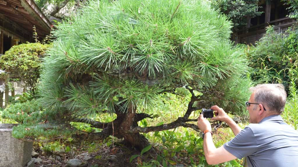 Nos llamó la atención un pino, del que por un lado salen las típicas acículas de un Parviflora, mientras que por el otro, las acículas pertenecían a un Thumbergii. Al acercarnos a ver de qué se trataba pudimos comprobar que los dos salían de un solo pie. La situación era clara, el Parviflora estaba injertado en pino Thumbergii, lo sucedido es que muchas de las ramas originadas del primero habían ido muriendo quedando a merced de unas nuevas ramas que habían brotado por debajo del injerto con mucha más fuerza. Teniendo hoy en día más masa verde de Thumbergii que de Parviflora. Seguimos aprendiendo de la Naturaleza.