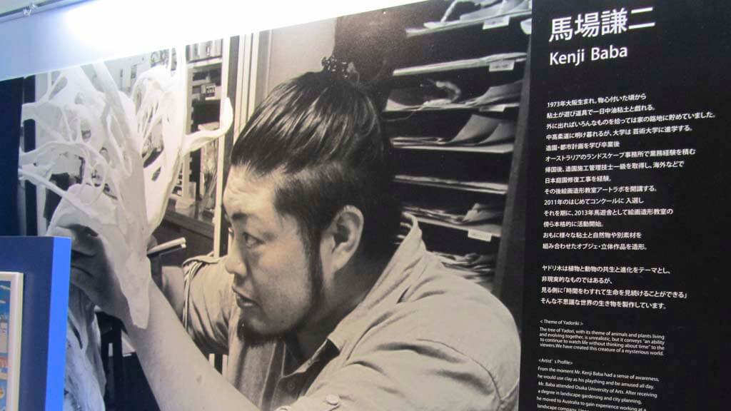 Además de su maestría en tallado y composición, Kenji Baja, nos muestra con generosidad su mundo interior, así como su personal visión de la naturaleza. Evolución y convivencia de los distintos seres vivos parecen ir más allá del aprovechamiento de los materiales a la hora de hacer las esculturas.