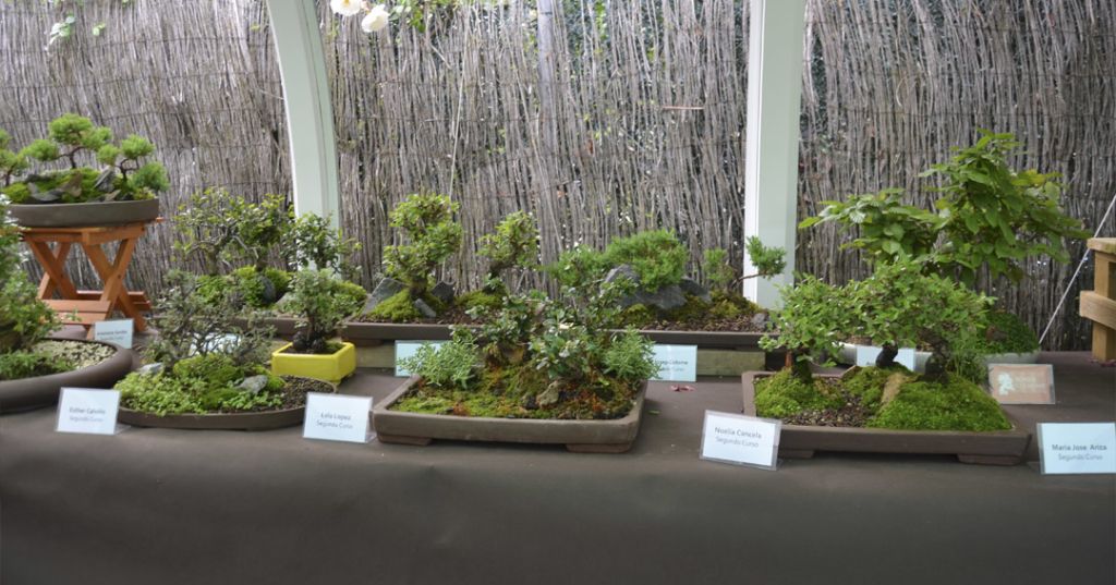 Todos los años se exponen una pequeña selección de trabajos llevados a cabo por los alumnos. Los trabajos presentados no pretenden exhibir bonsáis ya terminados, sino mostrar la evolución de los mismos, partiendo de materiales muy diversos. La intención de la exposición es que alumnos y visitantes puedan darse cuenta del nivel de los distintos grupos y por tanto de su evolución a lo largo del tiempo. Con estudio y dedicación, se pueden alcanzar buenos niveles de trabajo y diseño en los bonsáis.